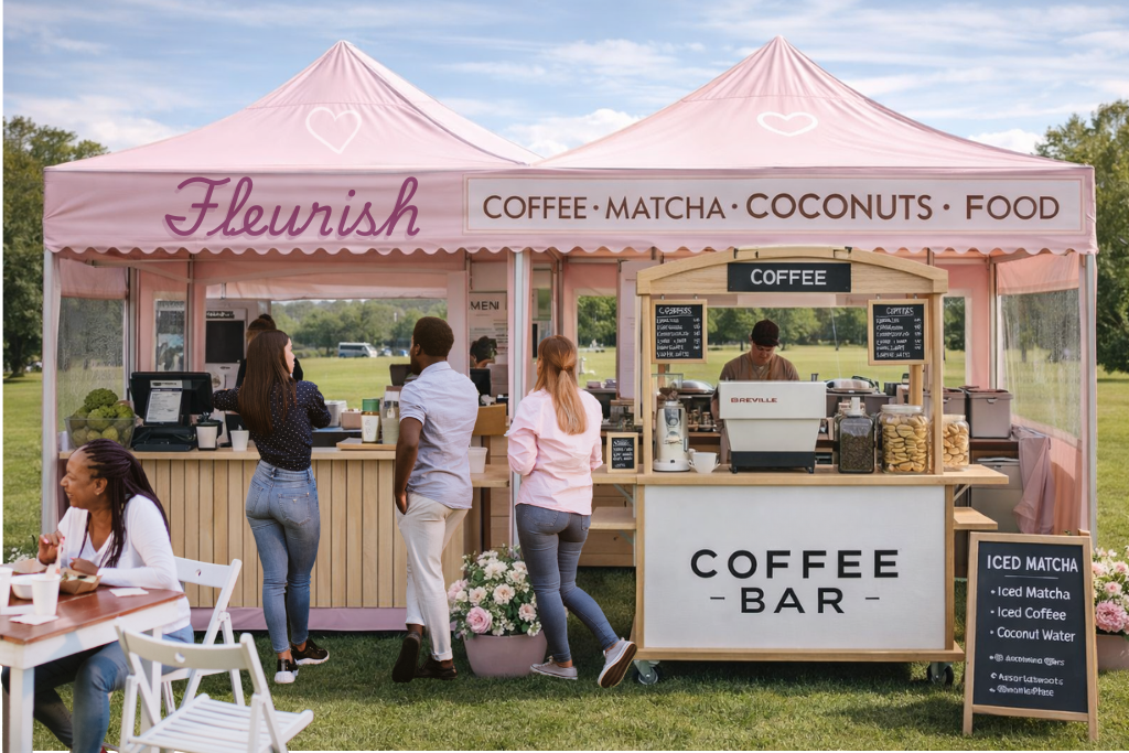 From handcrafted matcha and espresso carts to custom-branded coconuts and beautifully styled stations, everything we offer is designed to feel thoughtful, inviting, and visually refined.
